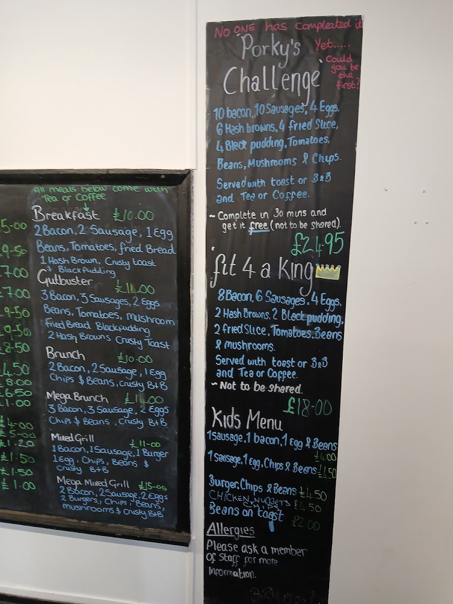 Porky's Diner Menu