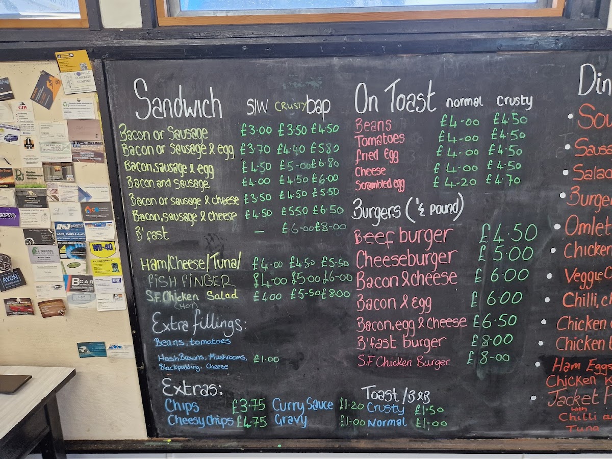 The menu is ideal for guests looking to enjoy traditional breakfast items such as bacon, sausage, and egg dishes, as well as lunch options like salads and sandwiches. The setup supports quick ordering and casual dining occasions, with serving staff available to assist.